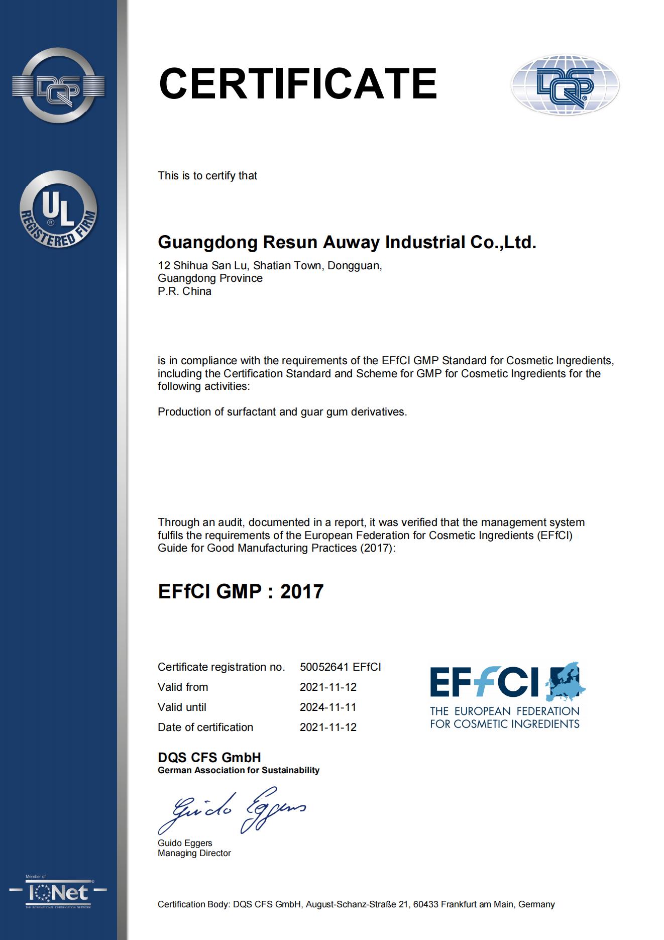 廣東麗臣奧威EFfCI GMP認(rèn)證證書