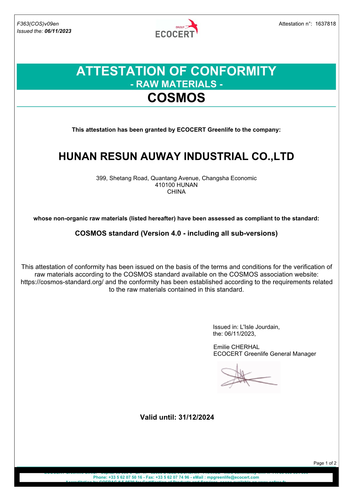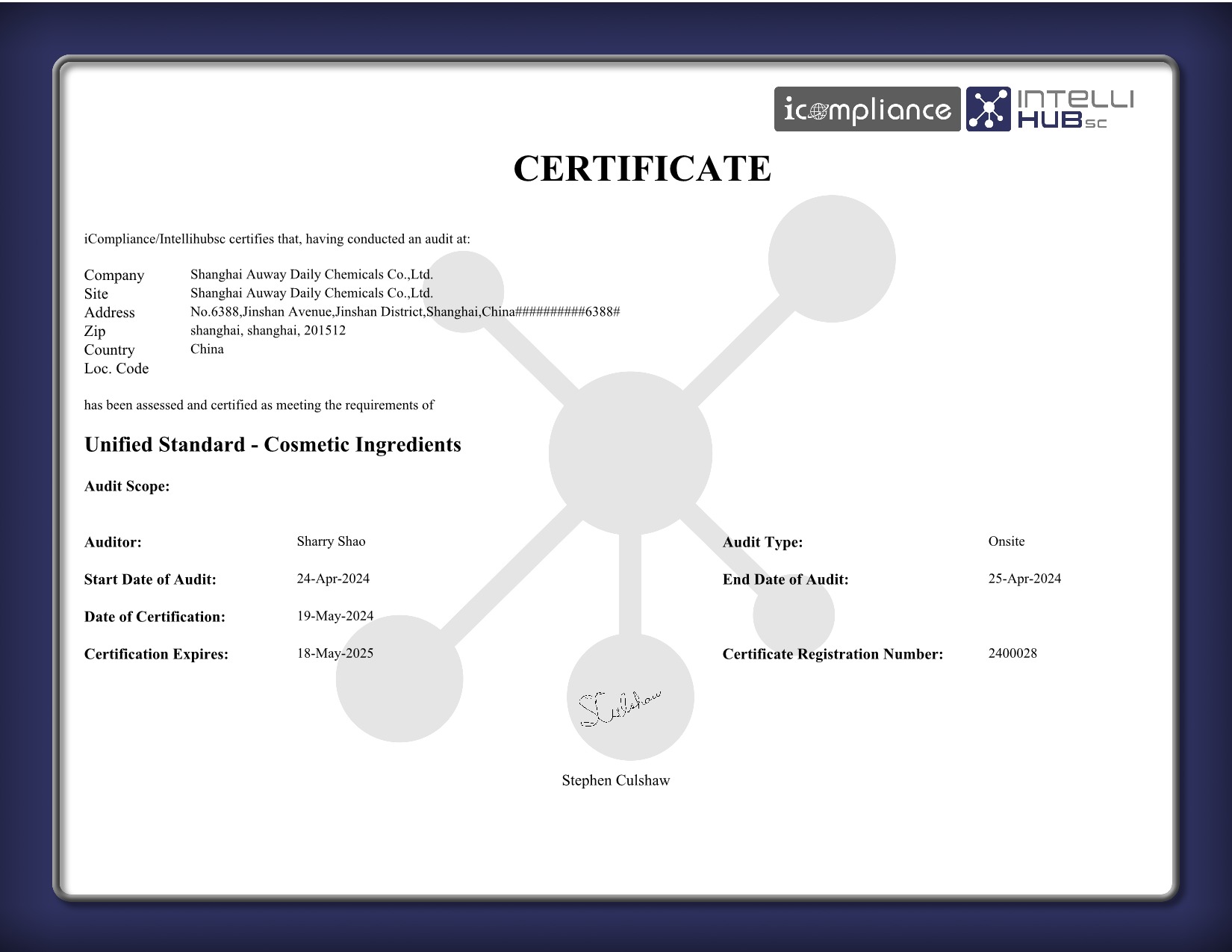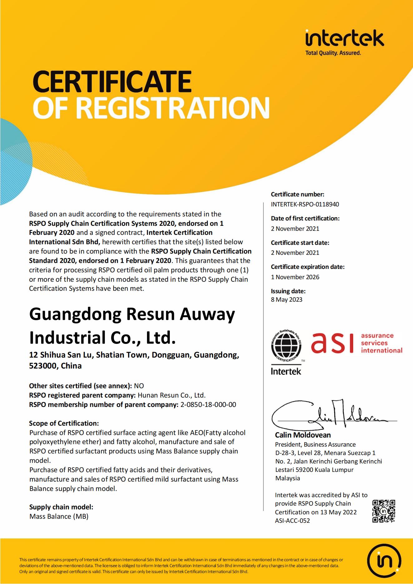 麗臣奧威歐盟REACH注冊(cè)證書(CAS:68891-38-3)