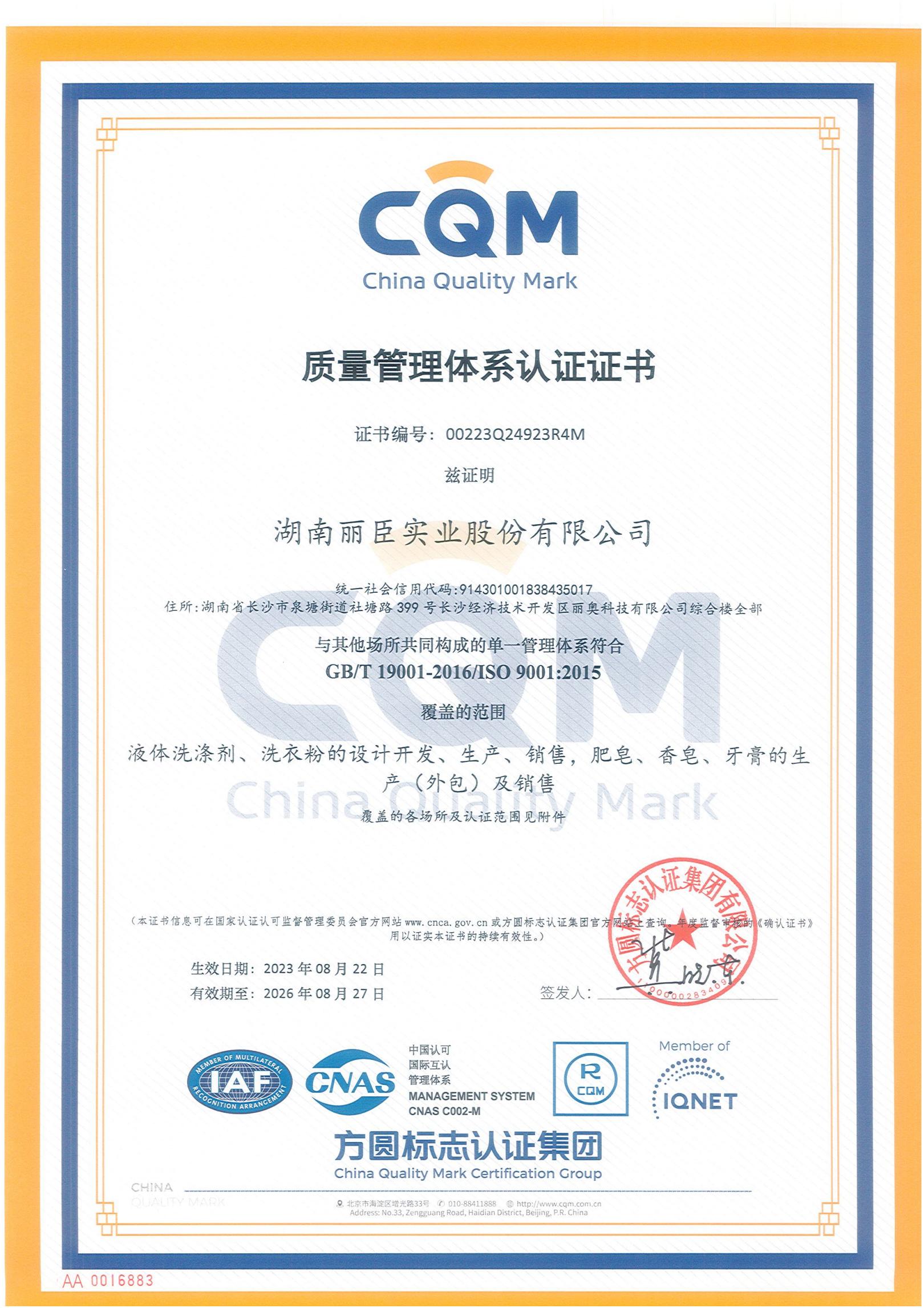湖南麗臣質(zhì)量管理體系認(rèn)證證書
